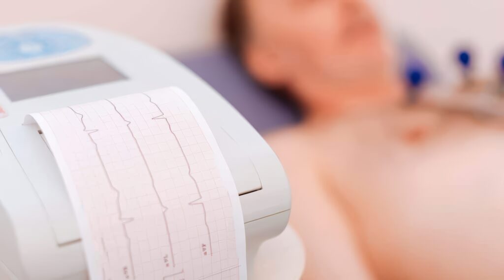 Un electrocardiograma (ECG o EKG) es un examen que registra la actividad eléctrica del corazón, detectada a través de electrodos colocados en la superficie corporal y conectada a un electrocardiógrafo, mostrando las señales eléctricas como líneas onduladas.